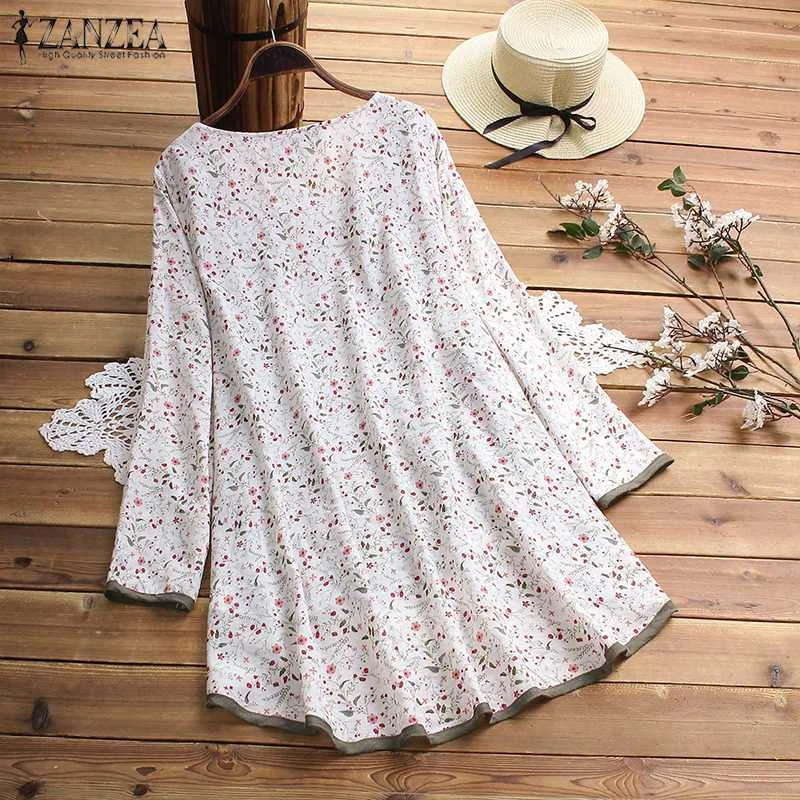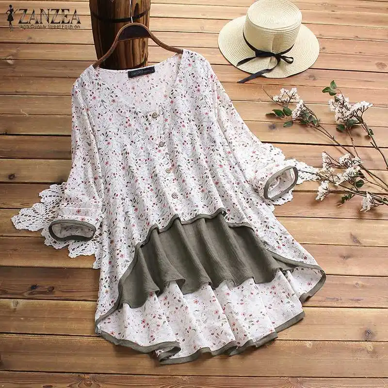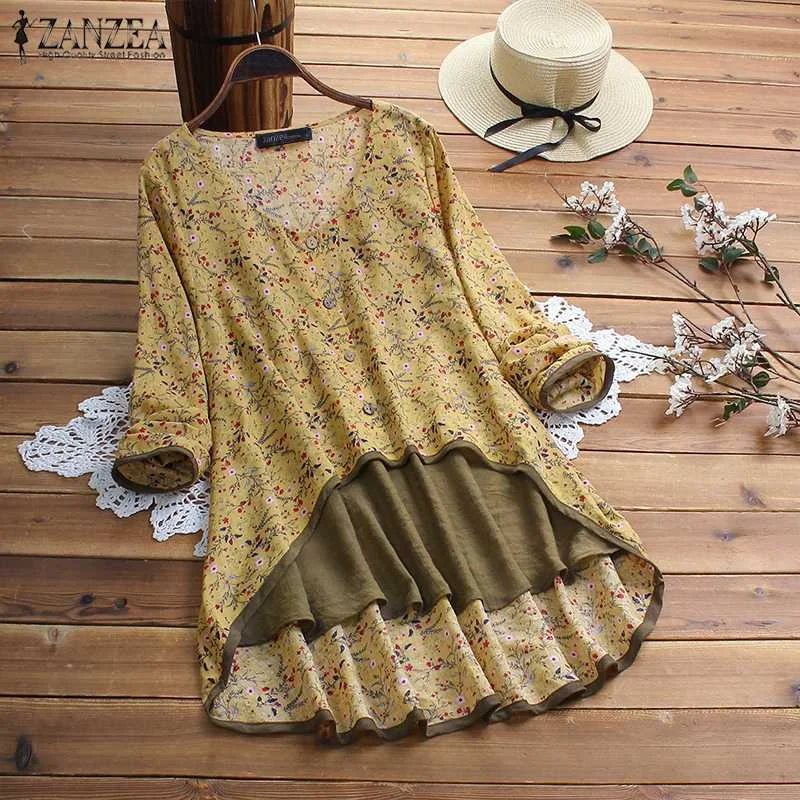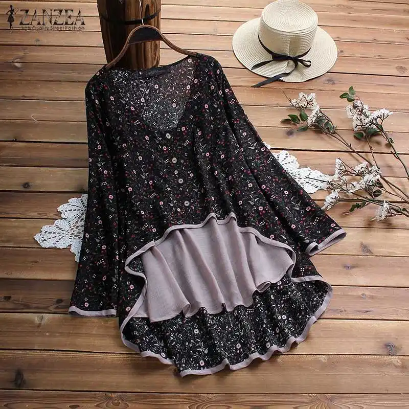 Best 2019 Women's Summer Blouse ZANZEA Vintage Asymmetrical Tops Casual Long Sleeve Printed Shirts Femal
