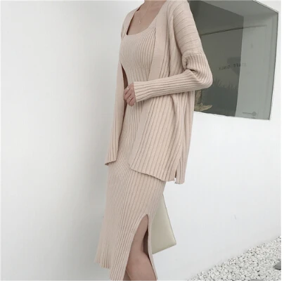 Promo 2019 New High quality winter Women's Casual Long Sleeved Cardigan + Suspenders Sweater Vest Dress T