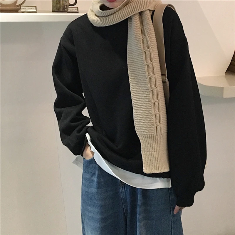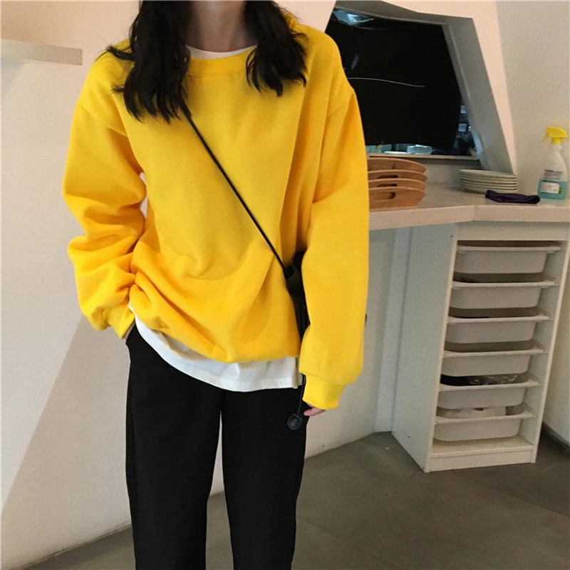 Best Basic Fleece Kpop Sweatshirt Women Casual Loose Solid Color Women's Hoodies Winter New Warm Harajuk