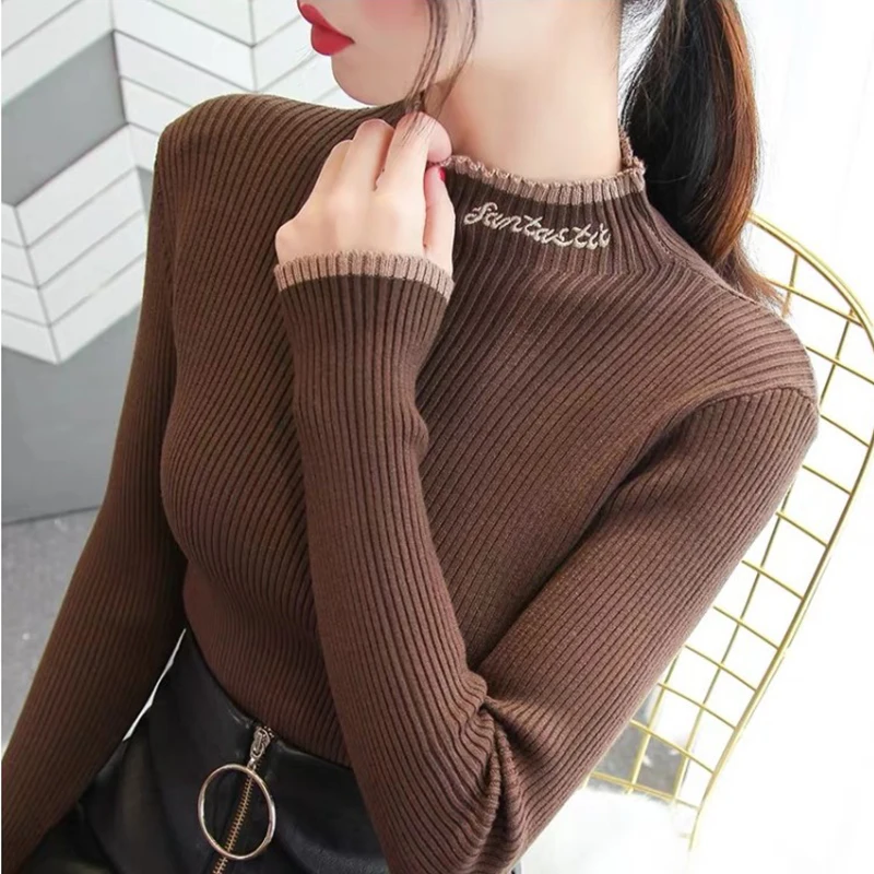 Promo Womens Sweaters Autumn and Winter Fashion Women's Sweater High ElasticTurtleneck Sweater Female Sli