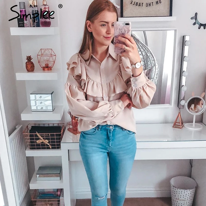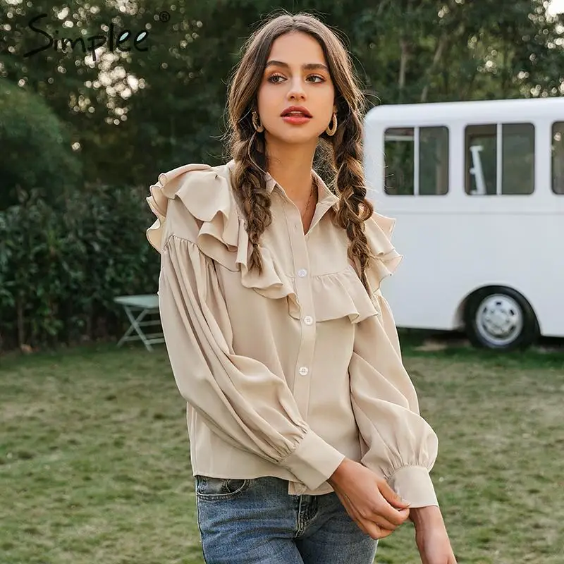 Today i want to review about Simplee Vintage ruffled women blouse shirt Elegant lantern sleeve buttons female tops shirts Autumn. I uncover this cool product from China Online Store, best manucafturer.
