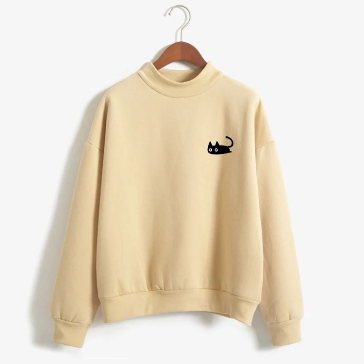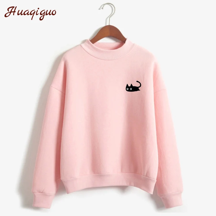 Promo 2019 Autumn Casual Harajuku Kawaii Black Cat Sweatshirts Women Long Sleeve Turtleneck Tops Pullover