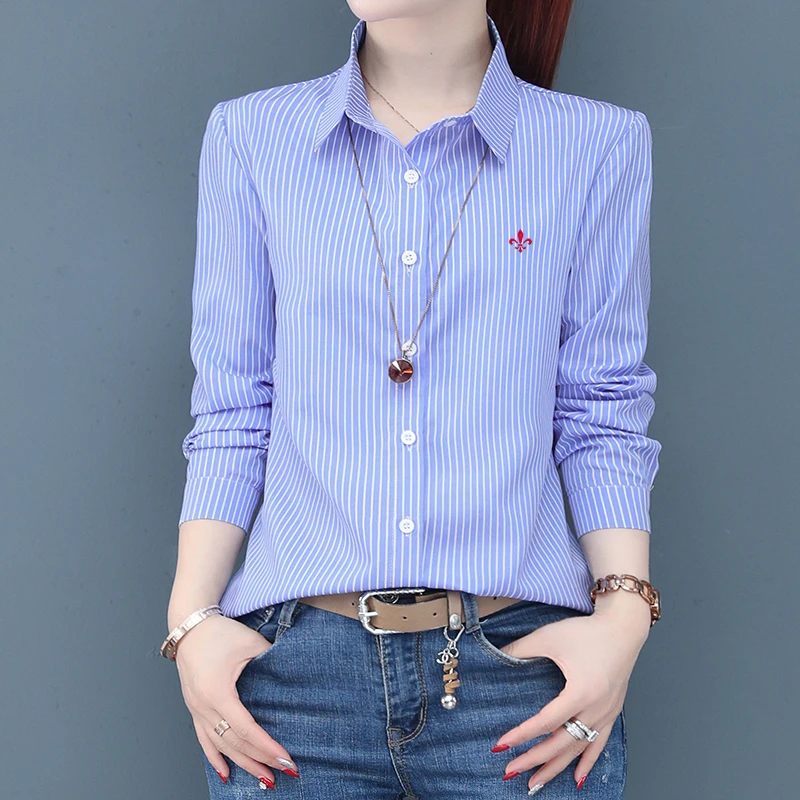 Promo Dudalina New Women Blouses 2019 Autumn Striped Button Women Tops And Blouses Casual Long Sleeve Blo