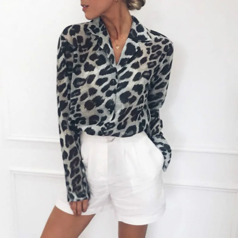 New New Woman Tops And Blouses Hot Sale Women's Long-sleeved Casual Leopard Print V-neck Chiffon Shirt