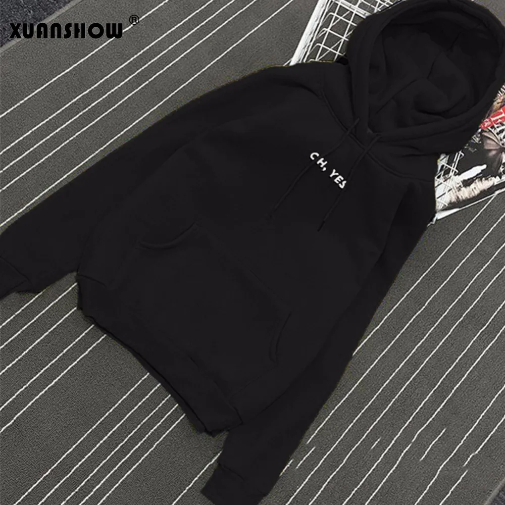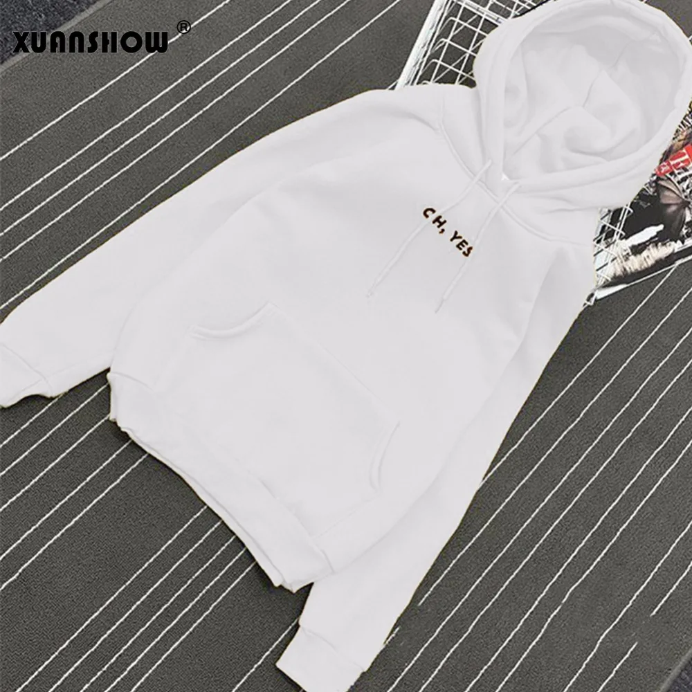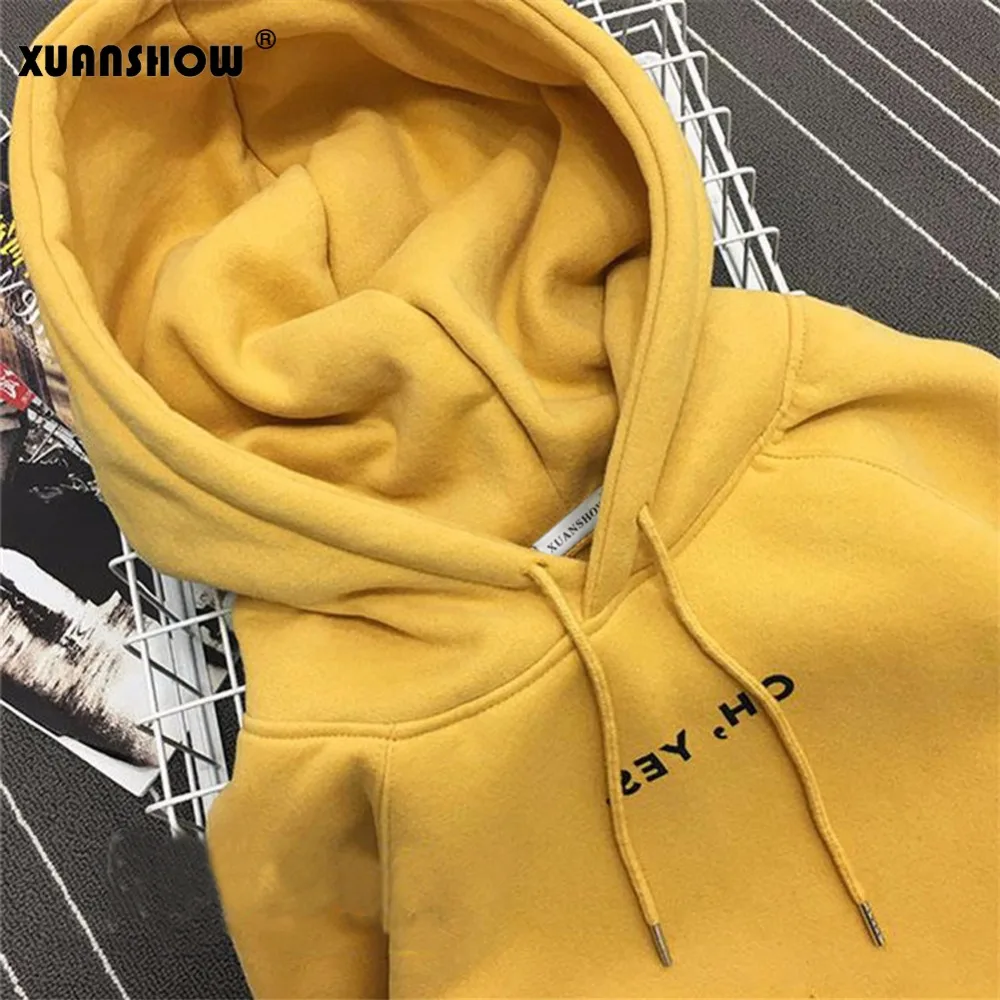 Buy XUANSHOW Spring Autumn Women Hoodies Hoodies Fleece Oh Yes Letter Harajuku Printed Pullover Loose F