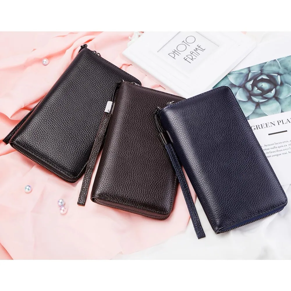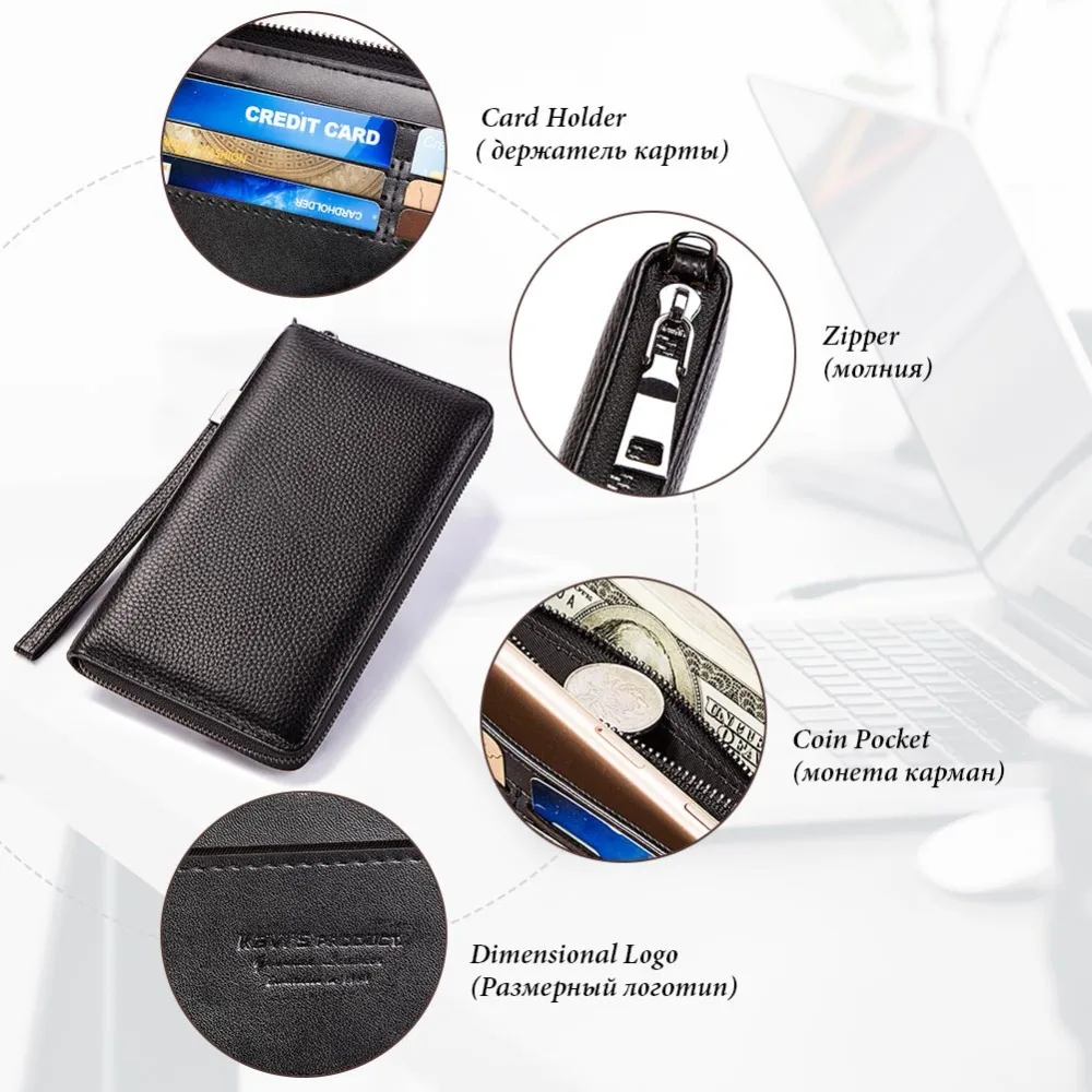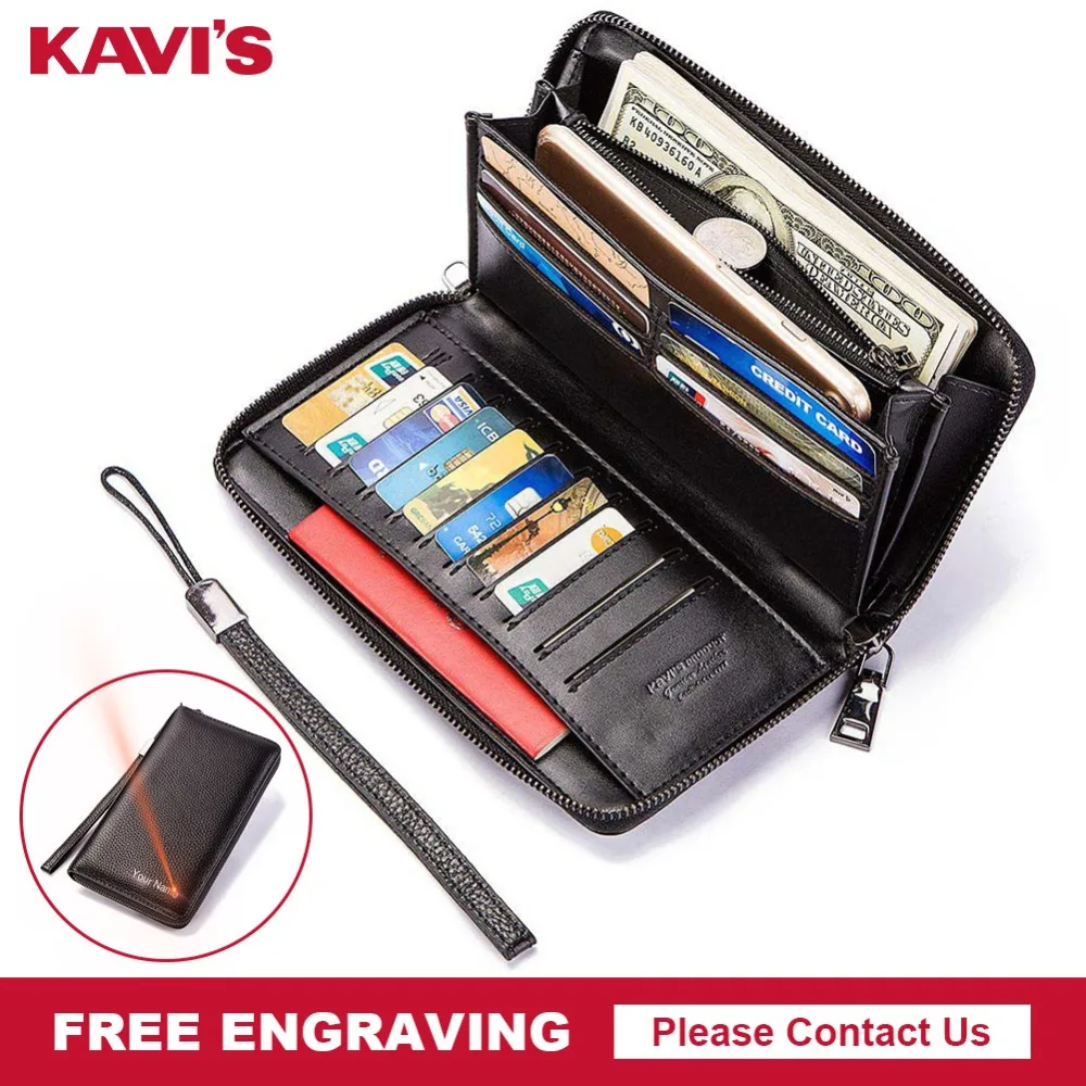 Best KAVIS Genuine Cow Leather Long WalletName Engraved Men Coin Purse Male Clutch Walet Portomonee Hand