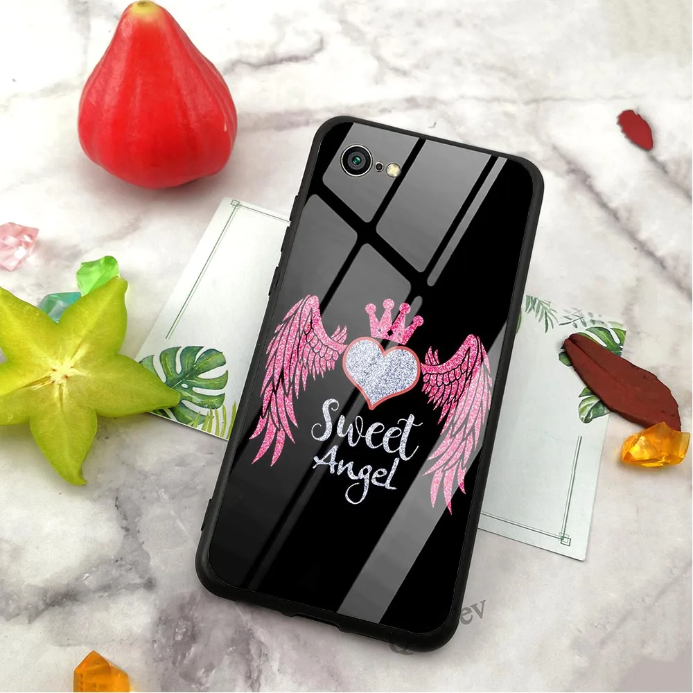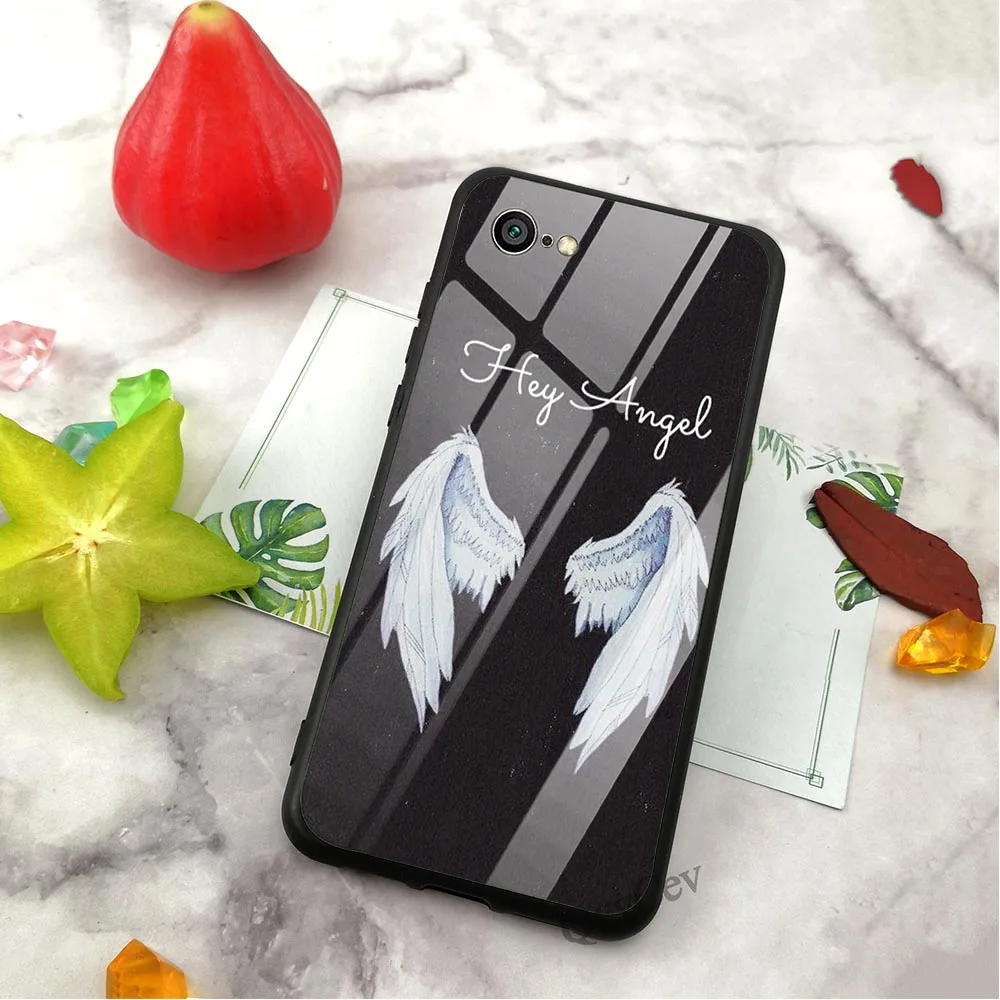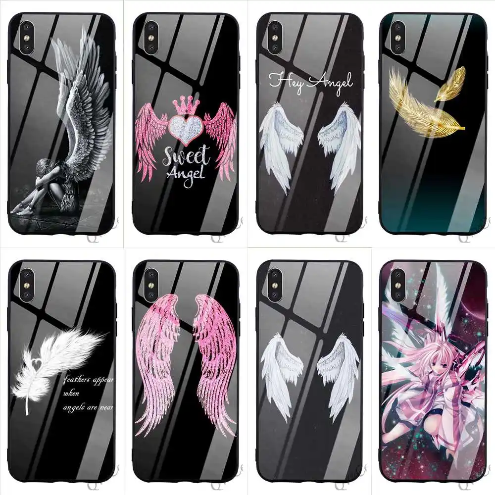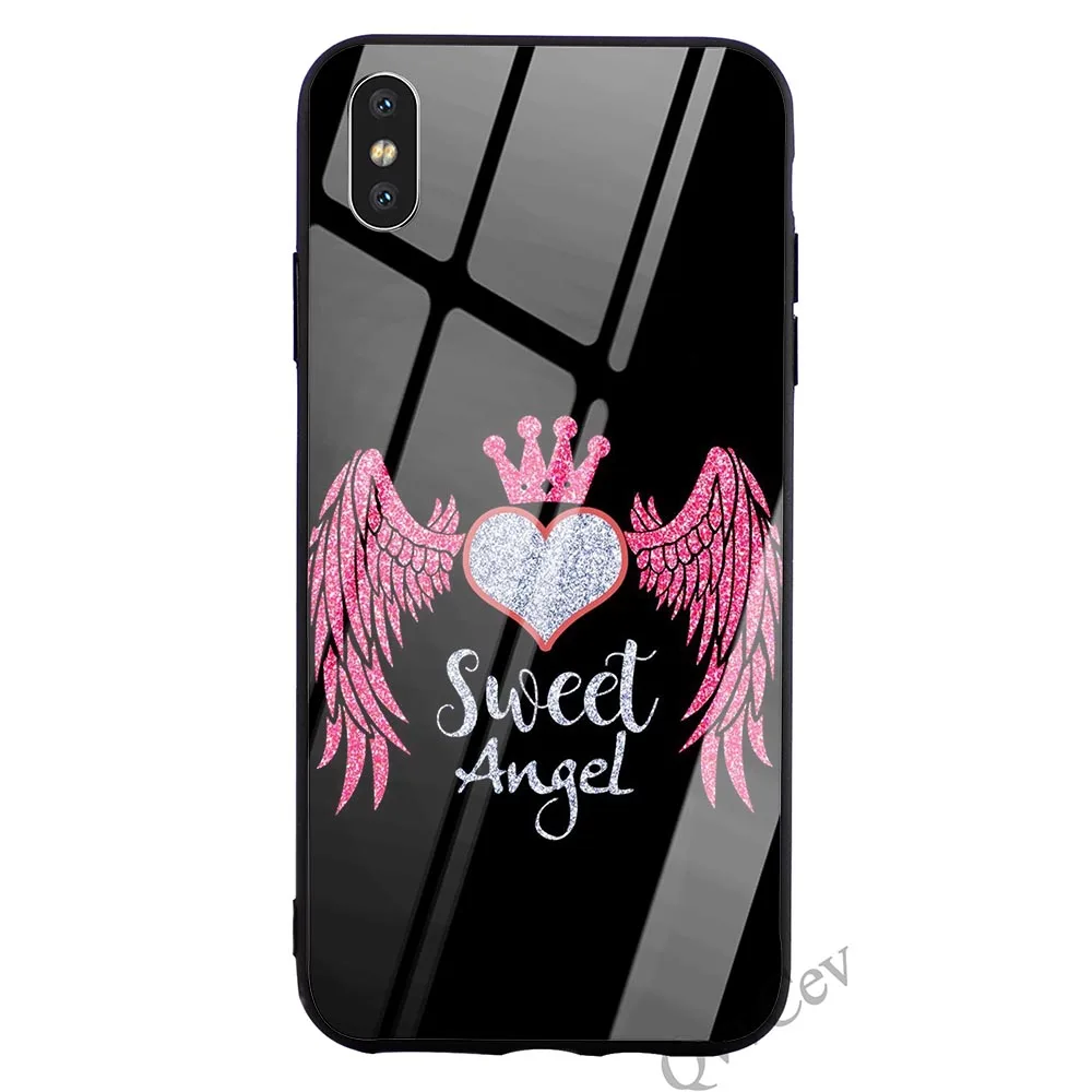 New Print Wing Angel Girls Tempered Glass Phone Cover for iPhone 6S Plus Case 8 XR X 7 6 5 5S SE Xs Max