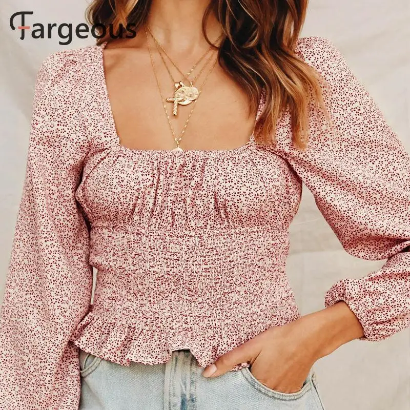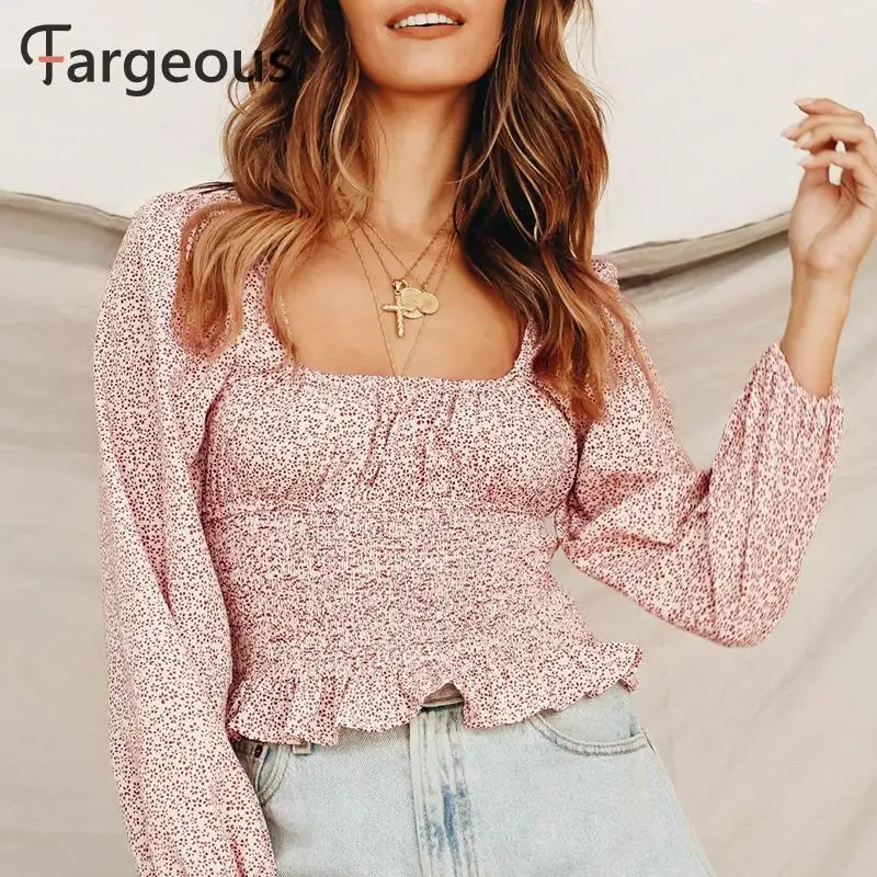 New Vintage Floral Print Women Blouses Sleeve Elastic Peplum Tops 2019 Summer Boho Slim Blouse Shirt Sq