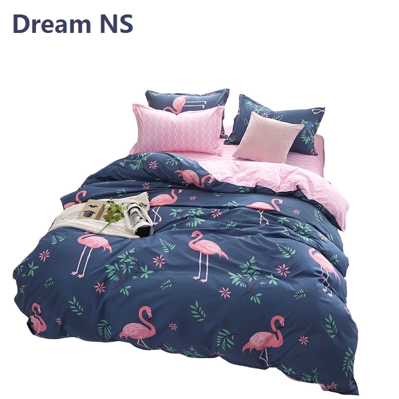 Promo AHSNME Flamingo Duvet Cover Set Bird Bedding Sets King Queen Size Euro Parure de Lit Adulte Soft Fa