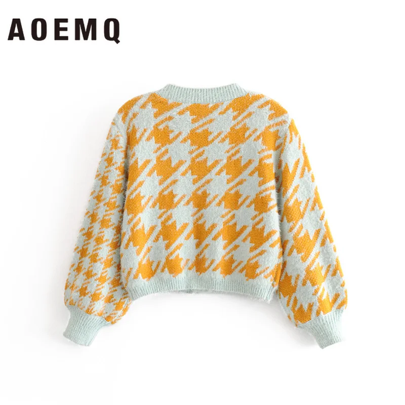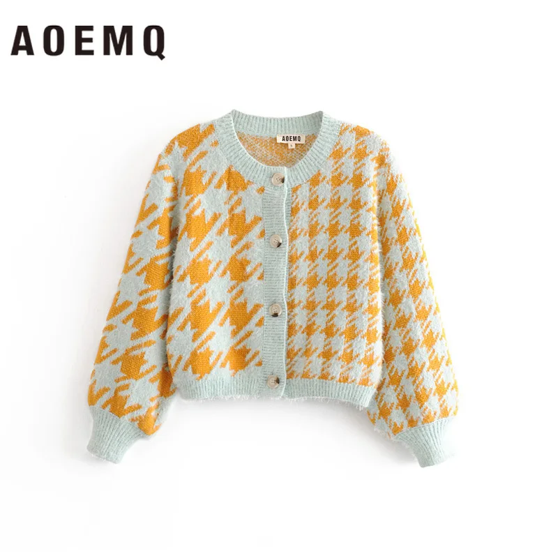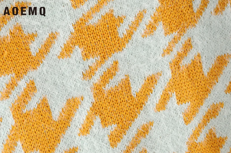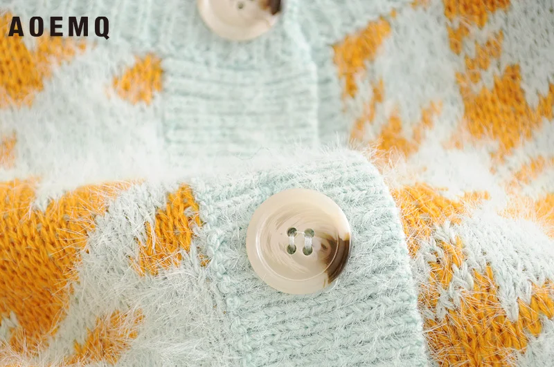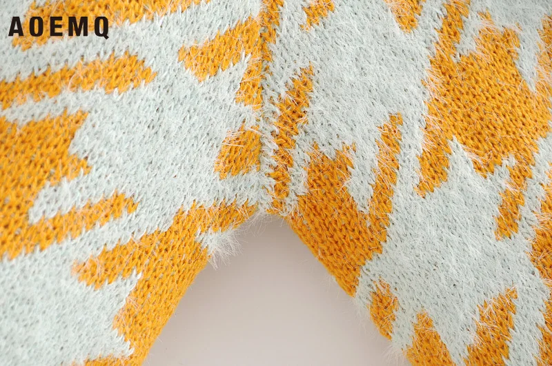 New AOEMQ Winter Warm Sweaters Open Stitch Singe-breasted Cardigan Sweaters Patchwork Pattern Print War