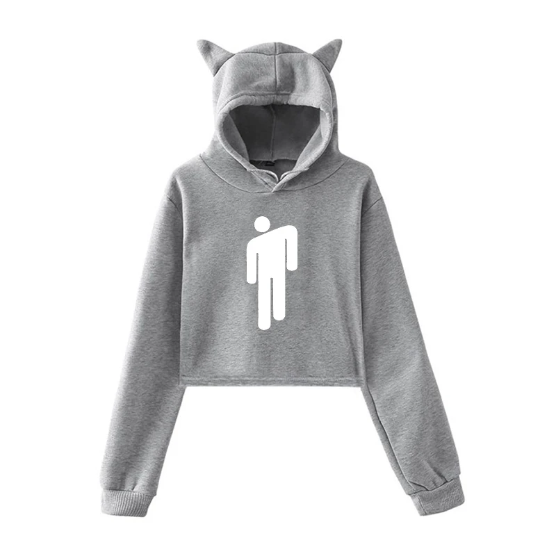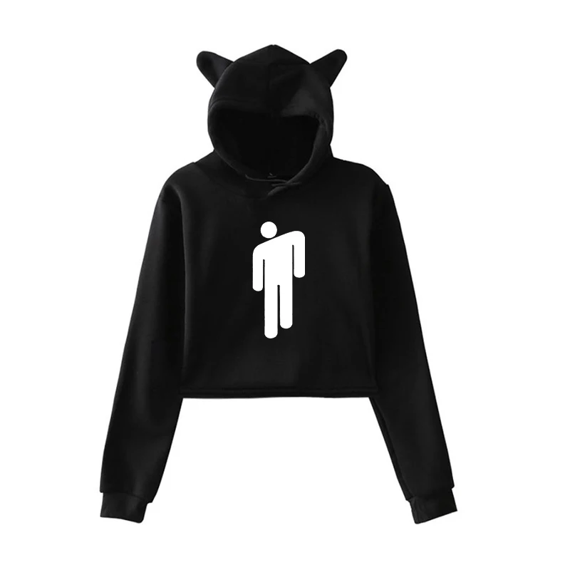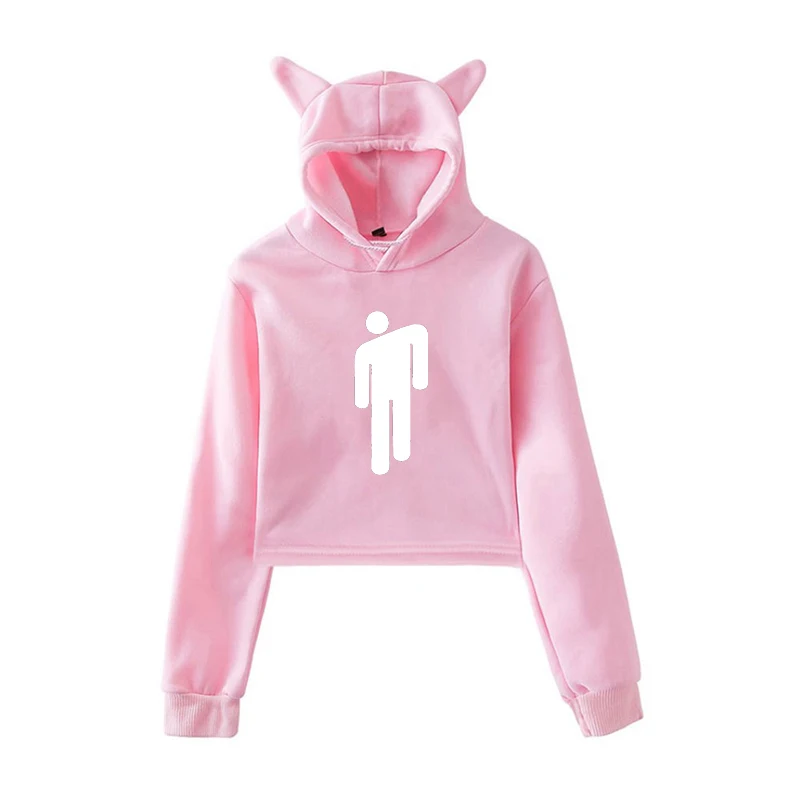 New Billie Eilish Hoodies Women Harajuku Sweatshirt Pink Crop Top Clothing Pullover Clothes for Girls S