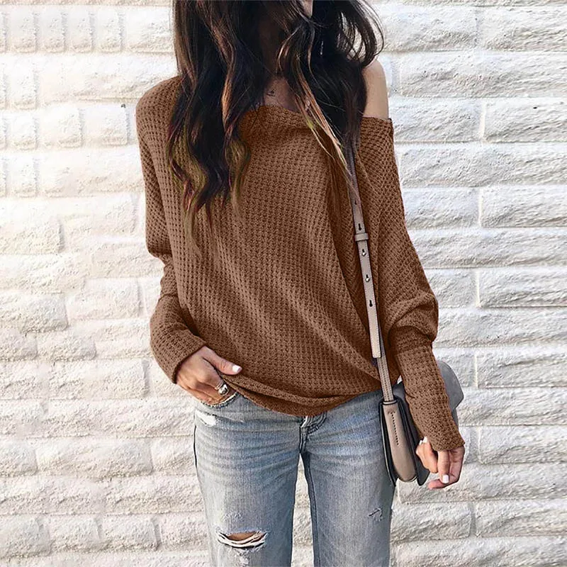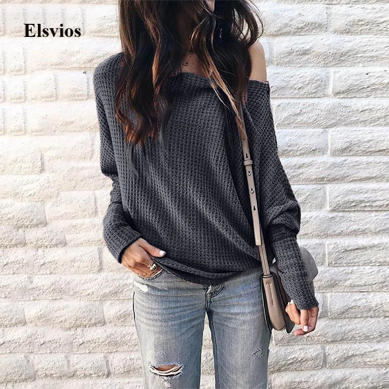 Promo Elsvios Women Sexy Off Shoulder Knitted Sweater Elegant Batwing Long Sleeve Pullovers Autumn Solid