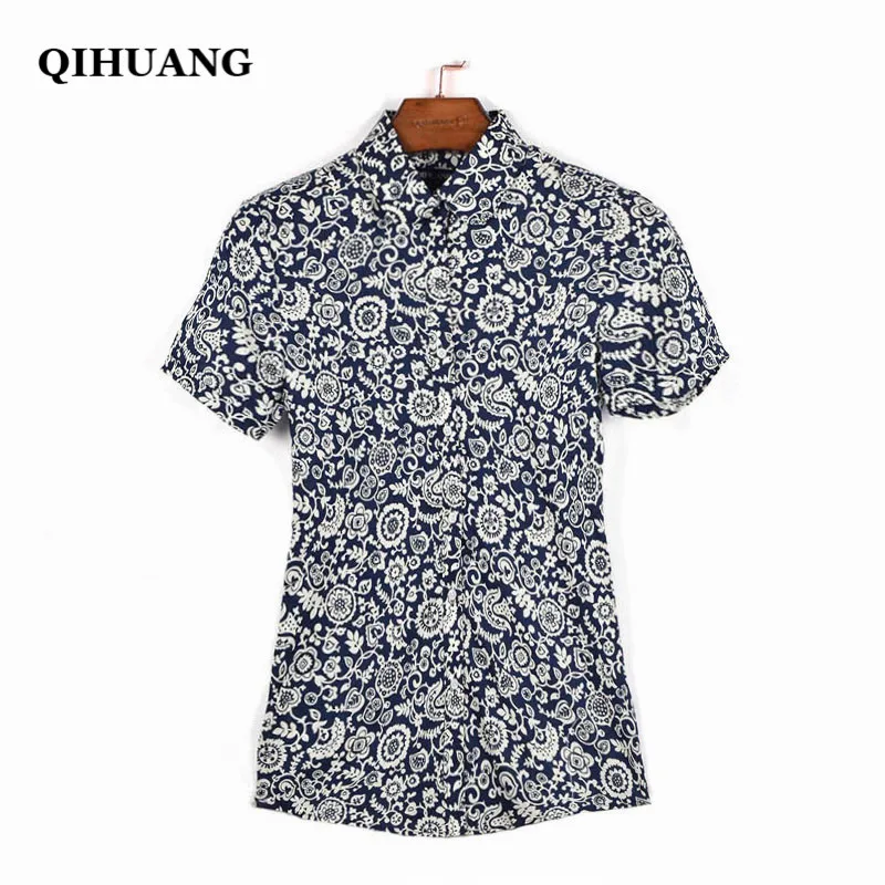 Best QIHUANG Women Cheery Floral Printed Blouse Shirt with Short Sleeve 2019 Summer 100% Cotton Clothes