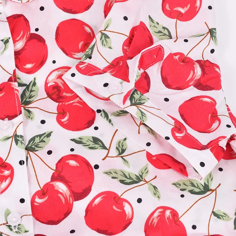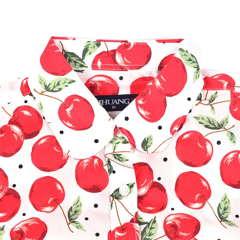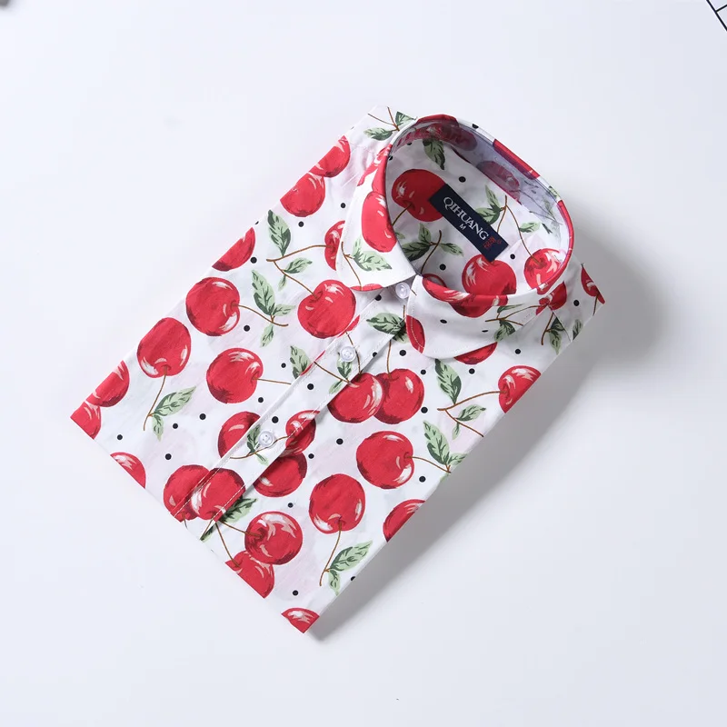 Promo QIHUANG Women Cheery Floral Printed Blouse Shirt with Short Sleeve 2019 Summer 100% Cotton Clothes