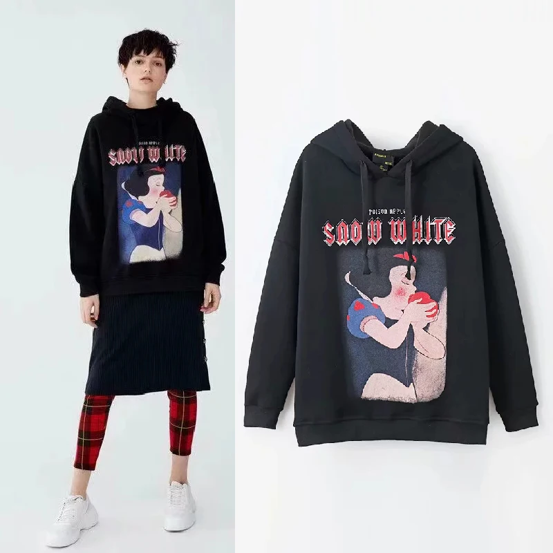 Promo women clothing snow-white cartoon Top Coat 2019 Autumn winter hooded Jumper fashion pullover street